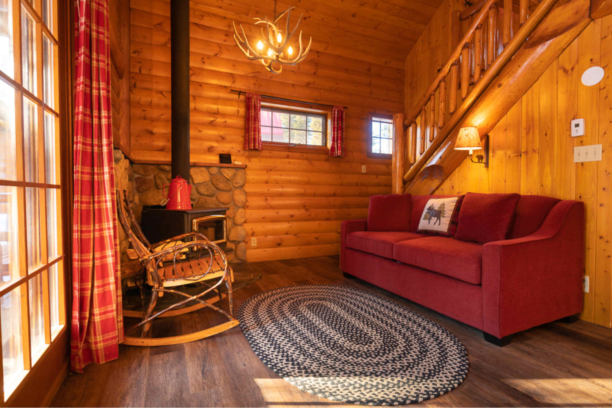 For families or larger groups, our stand-alone cabins offer ample space, comfort and charm. Choose from: Family Superior Two Bedroom Cabin (sleeps 5), Superior One Bedroom + Loft Cabin  (sleeps 6), One Bedroom + Loft Cabin (sleeps 4). Each stand-alone cabin has a reclaimed wood interior complete with a kitchenette. The living area is complemented by a wood-burning fireplace and a private deck.